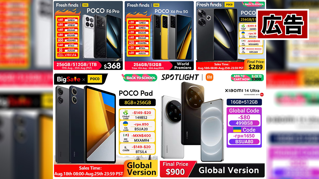 Xiaomi 14 UltraやPOCO F6 ProなどAliExpressで8月25日までセールで安くなるぞ!