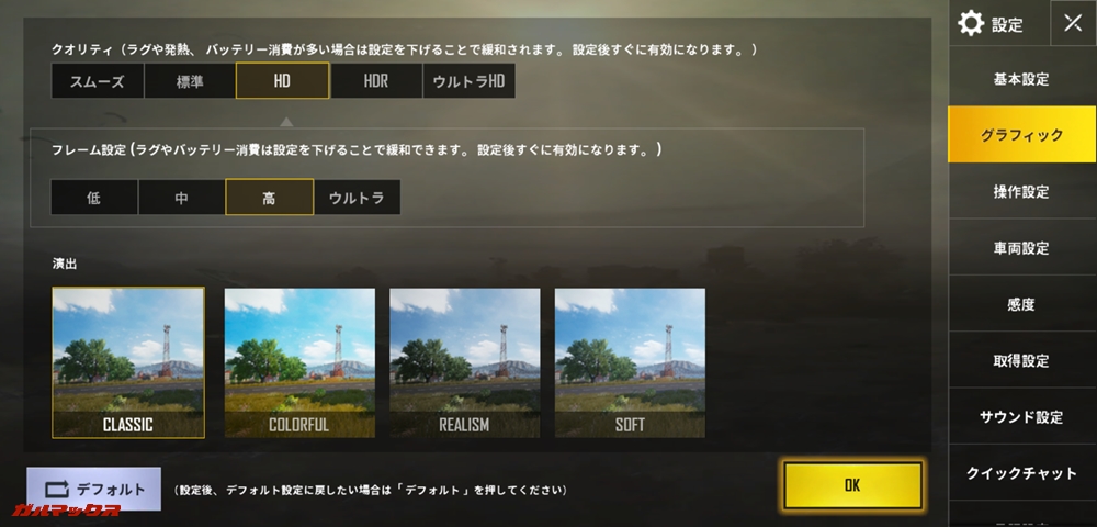 さて肝心のプレイフィーリングですが、Snapdragon 845に最適なグラフィック設定が自動に調整されているので、プレイ自体は非常に快適です。