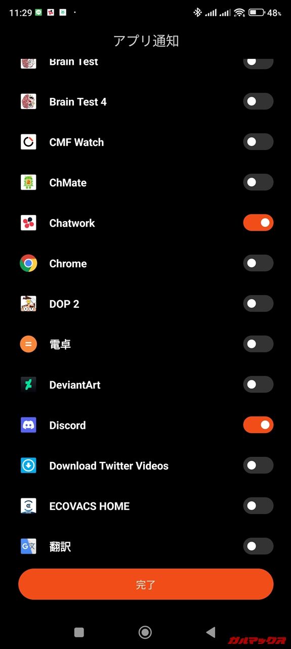 ▼スマホに届いた通知をXiaomi Smart Band 8 Pro上で表示する機能はもちろん対応。アプリの制限もありません。ちなみに全アプリをまとめてONにすることもできます。オススメはできんけど(常設通知とかも容赦なく飛んできてウザいため)。↓