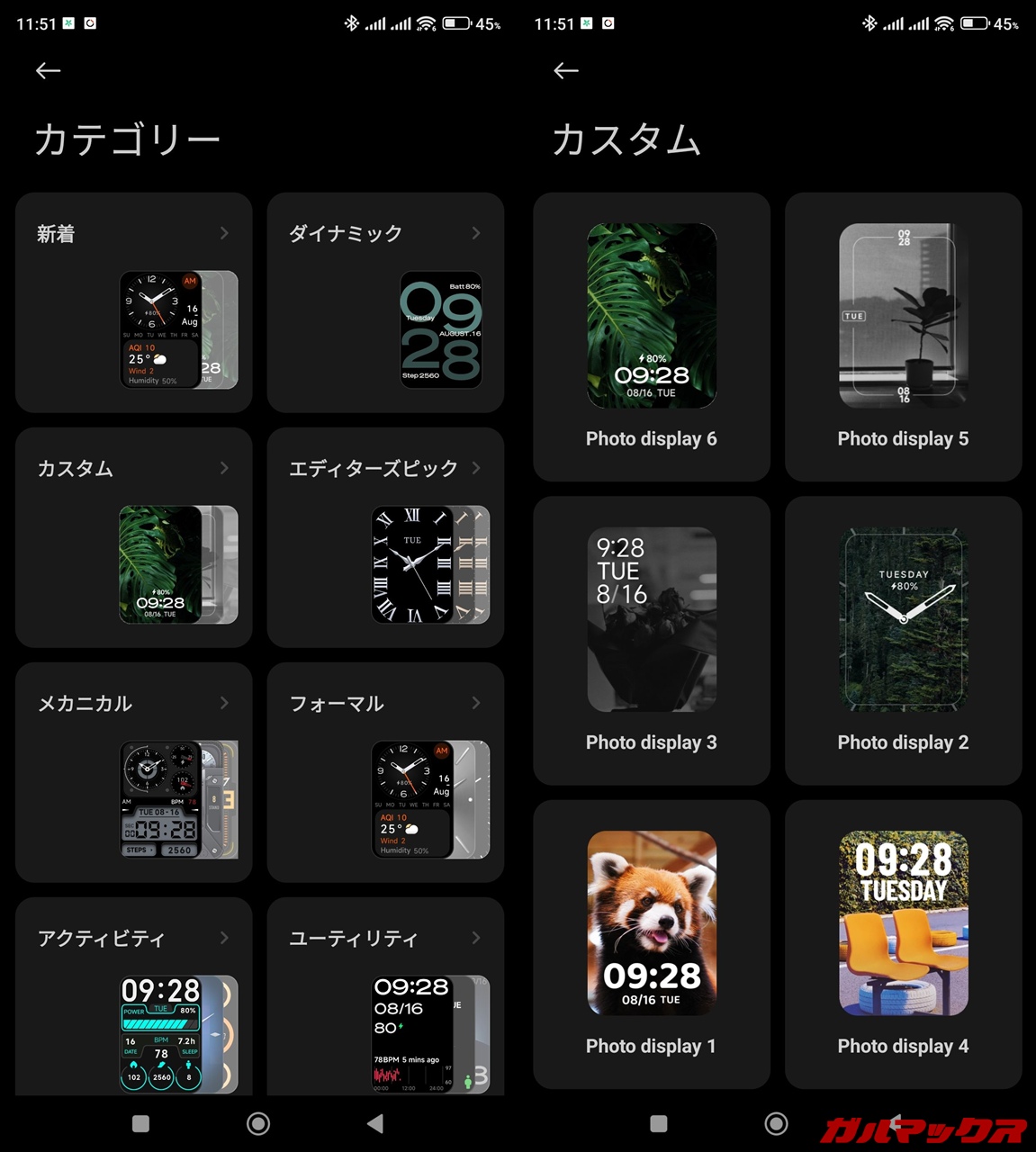▼また専用アプリである「Mi Fitness」から文字盤デザインの設定ができるのですが、そのラインナップもかなり豊富です。無印無印Smart Band 8の時点でも結構種類あったんだけど、Xiaomi Smart Band 8 Proではさらに増えてるかもしれん。↓