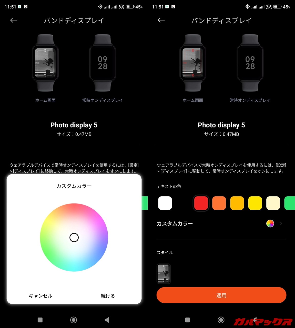 スマホだと有機EL搭載モデルであればAoDに対応していることがザラなんですがスマートウォッチ(スマートバンド)だとそうもいかなくて、AoDに非対応なモデルもまだまだあったりするんすよね。