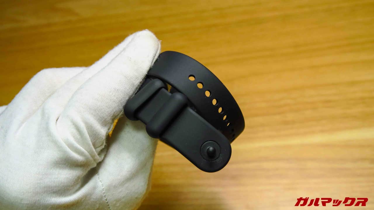 ▼バンドは着脱可能タイプ、ボタンを押せば外れるタイプなのでくっつけるのも外すのも楽ちん!これすごくありがたい。↓