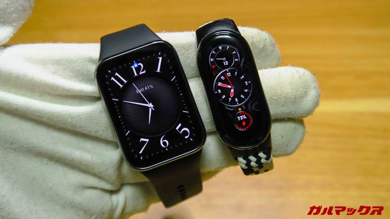 ▼無印Smart Band 8と比較。サイズが全然違う。右が無印です。↓