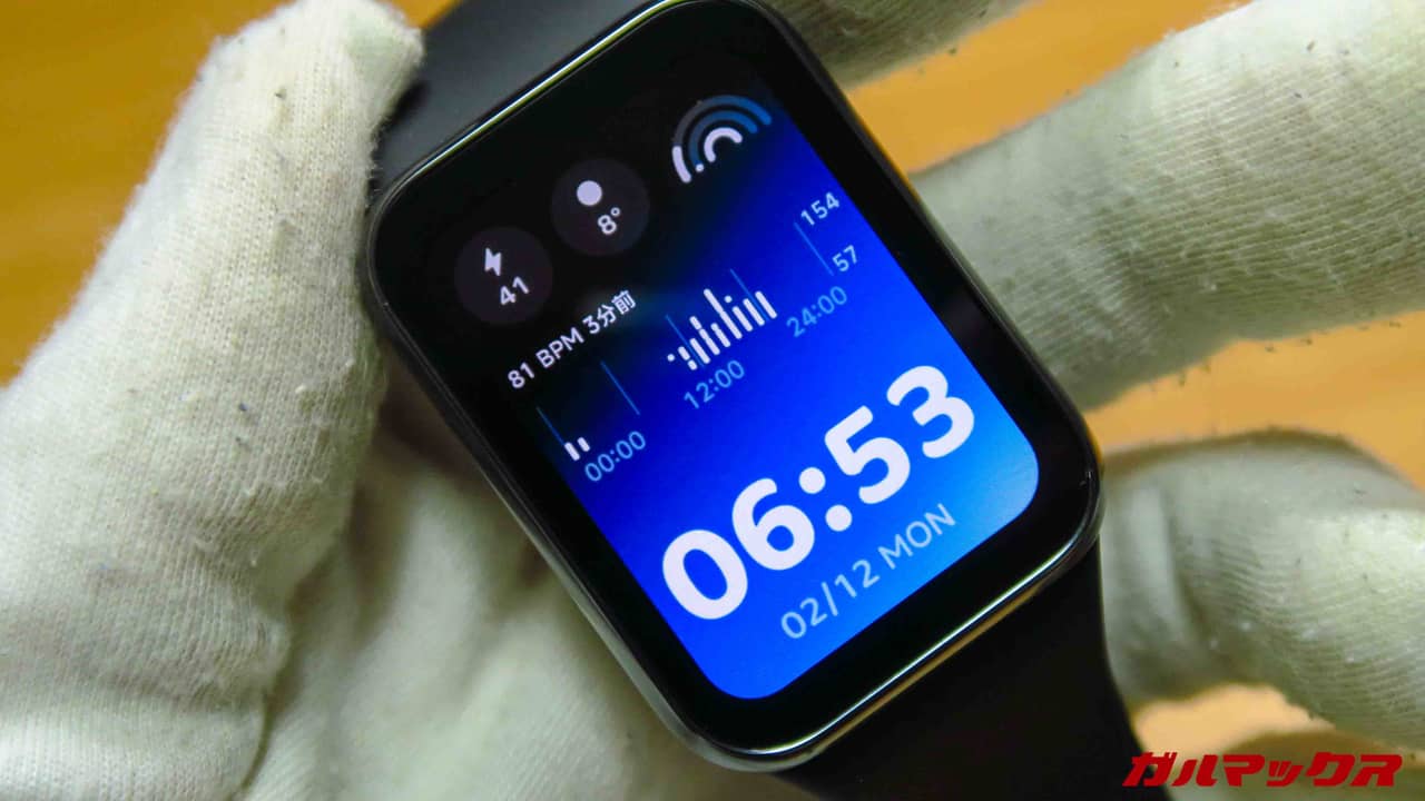 Xiaomi Smart Band 8 Proのディスプレイは無印に比べて縦だけでなく横にも広がっており、見易さは無印Smart Band 8から圧倒的に上がった印象。