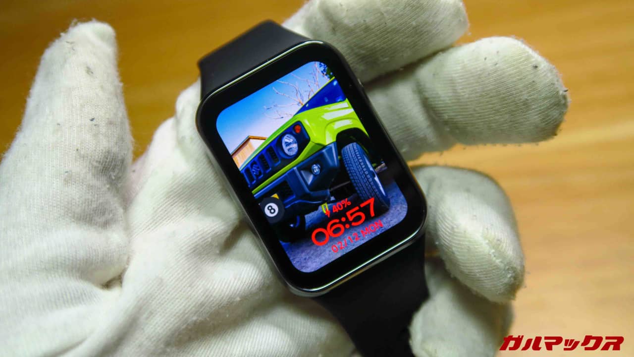 ▼もちろん好きな写真を文字盤にすることもできます。上でも書いたけど画面比率がいい感じなので見える範囲がすごく広い。スマホの壁紙、撮った写真もほぼそのまんま使えます。