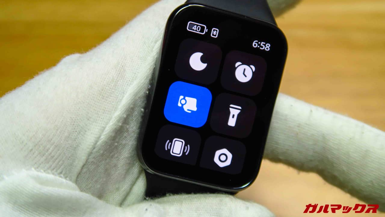 またXiaomi Smart Band 8 Proはアニメーションもかなり豊富です。メニューからアプリを開くときや通知、コントロールセンターを開くときなど、フェードイン・フェードアウトのアニメーションがヌルヌル動く。60FPSの恩恵をバチバチに感じますよこれ!