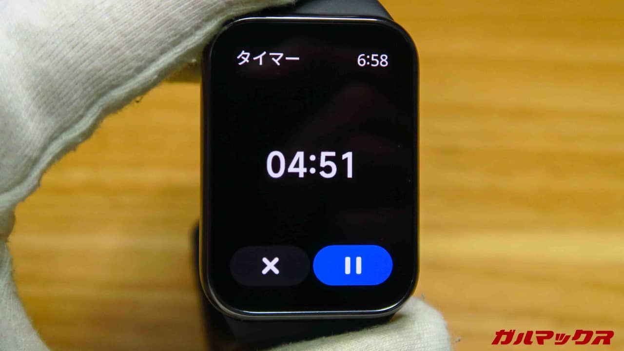 Xiaomi Smart Band 8 Proでも相変わらずこのタイマー画面から離脱すると解除されてしまうのでその点は他モデルに劣るんですが、それでもぐっと使いやすくはなった‥気がする。