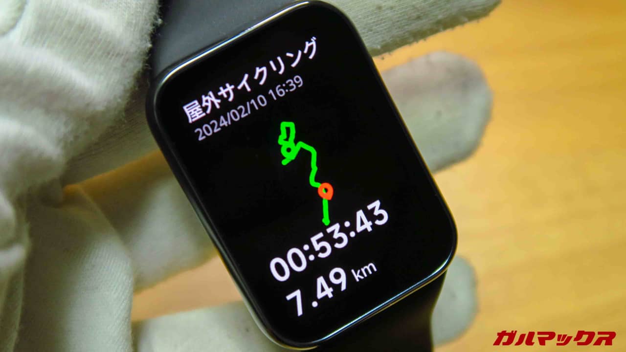 ▼ランニングやサイクリングなど、走り回るタイプの運動だとGPSを用いてルートも記録してくれます。測定が終わるとざっくりとルートの表示もしてくれますね。↓