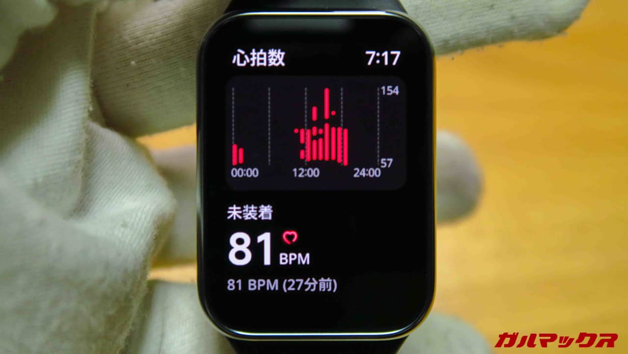あとAoDは一応気がかりな点はあります。通常であればAoDは画面の焼き付き防止のために一定時間で若干位置をずらして表示するようになってますが、Xiaomi Smart Band 8 Pro(や無印Smart Band 8)ではずれている感じが確認できなかったんすよね。