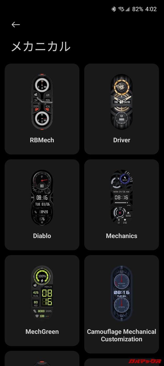 Xiaomi Smart Band 8は専用アプリ「Mi Fitness(Xiaomi Wear)」から様々な設定ができ、文字盤デザインも選べます。というかこれがないとなんもできん。