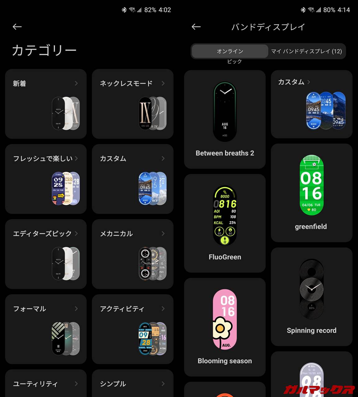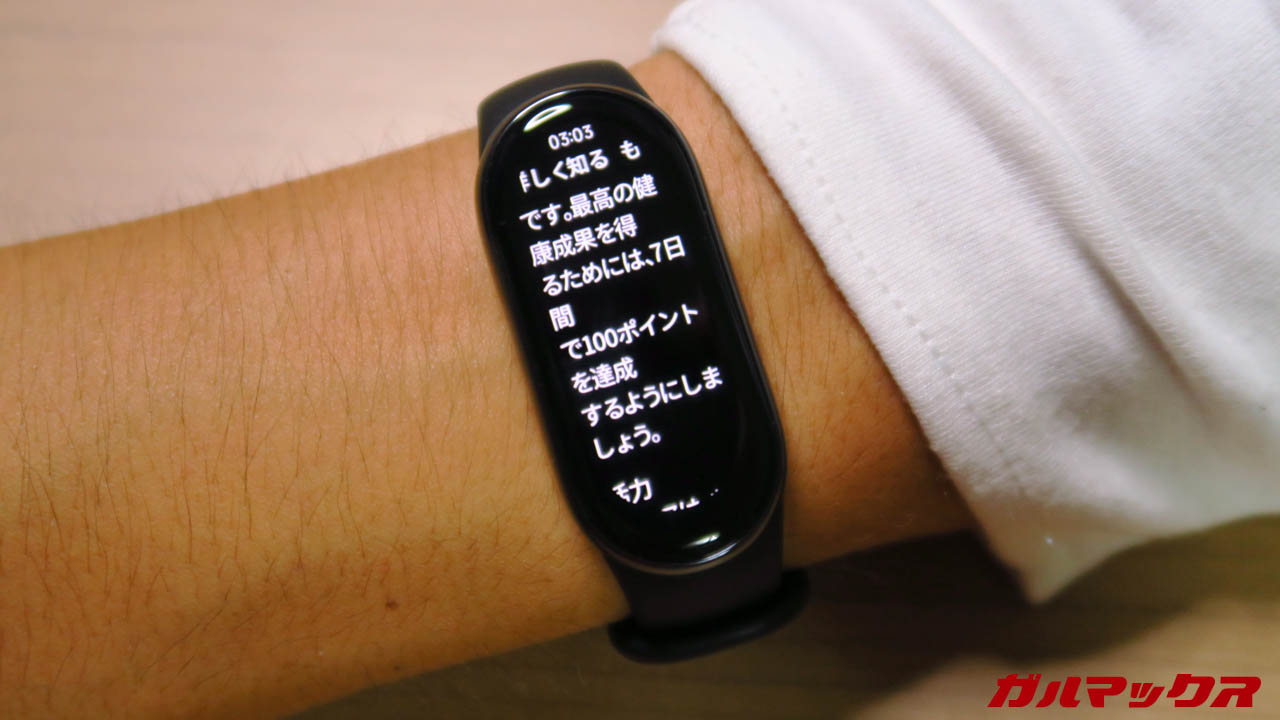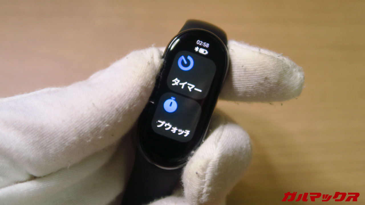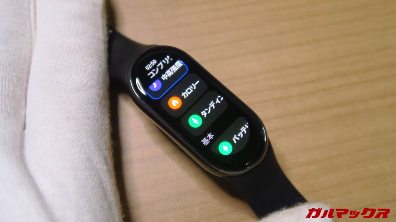 大抵のモデルだと30Hzとかでスクロールが結構カクついちゃうのですが、Xiaomi Smart Band 8はほとんどスマホみたいななめらかさで凄く見栄えがいい。指への吸い付きもバッチリ。