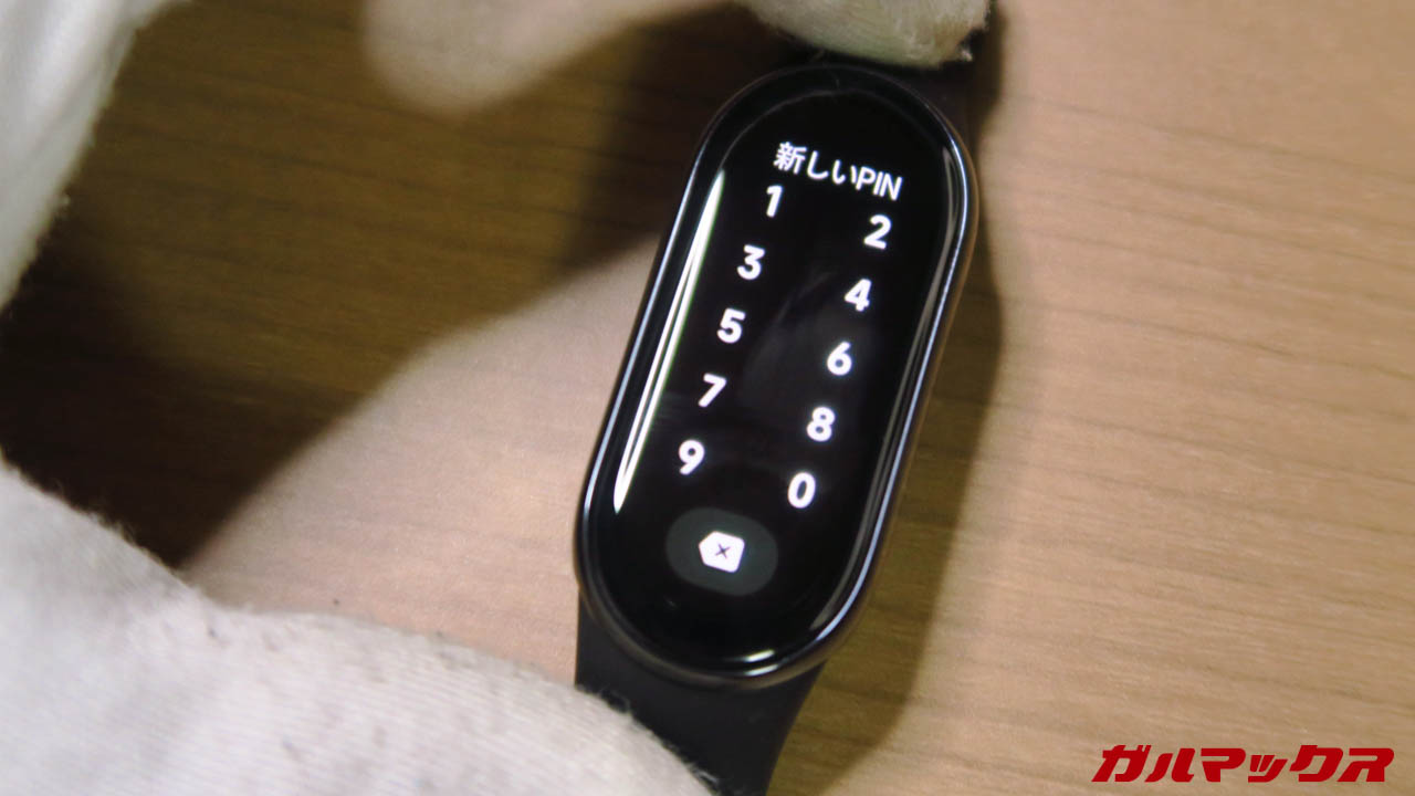 ▼Xiaomi Smart Band 8はPIN、つまり数字パスワードによるロック機能も対応していました。フロ入ってる間に誰かに通知を盗み見られたりする心配もなくなります(`・ω・´)。↓