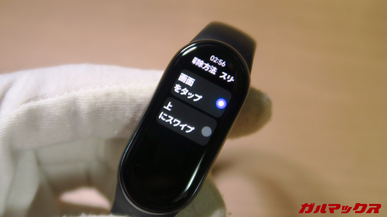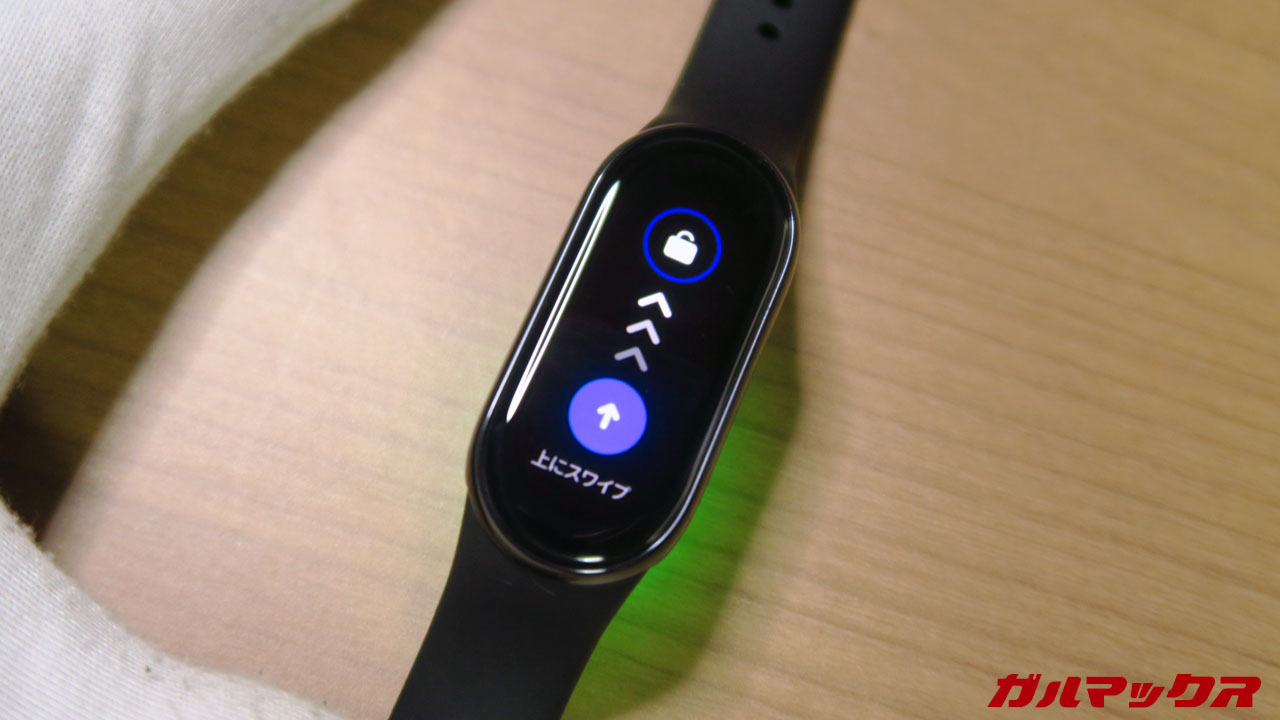 ▼あと画面消灯から復帰するとき、腕を上げたりタップして画面を点灯させることもできるほか「画面を上にスワイプして点灯」ということもできました。↓
