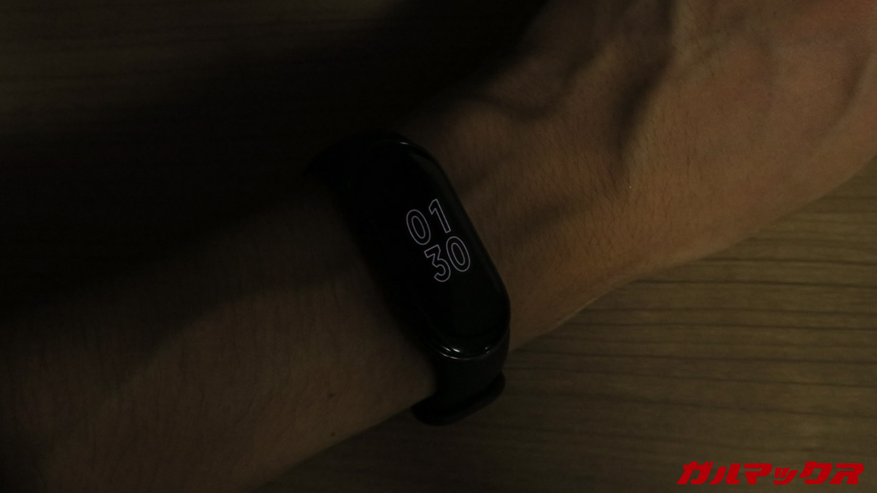 ▼Xiaomi Smart Band 8、AoD対応ってのも素晴らしいポイントです。電池持ちは悪化しますが画面消灯時でも時刻を表示するので、腕を傾けなくても時刻がわかるってのが便利でお気に入り。↓