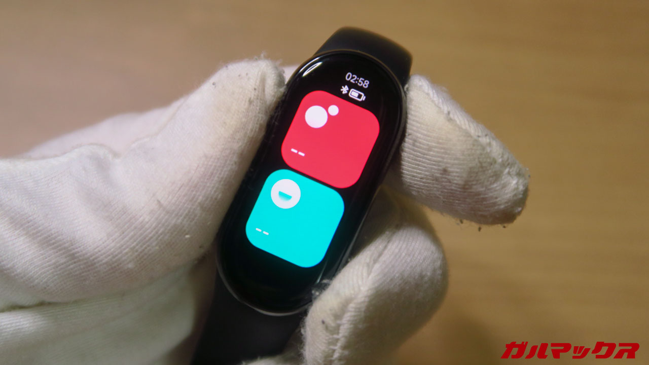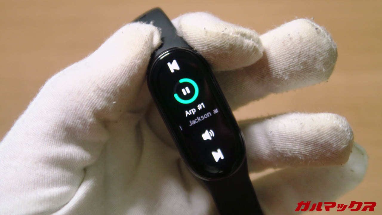 まず音楽コントロール機能。これはほとんどのスマートバンドで対応してて珍しさもクソもない機能なんですが、画面はボタン大きめで扱いやすいしシークバー付きで満足なUIデザインでした。