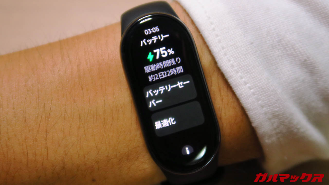 Xiaomi Smart Band 8の電池持ちは通常14日、ヘビーユースで6日と謳われてました。