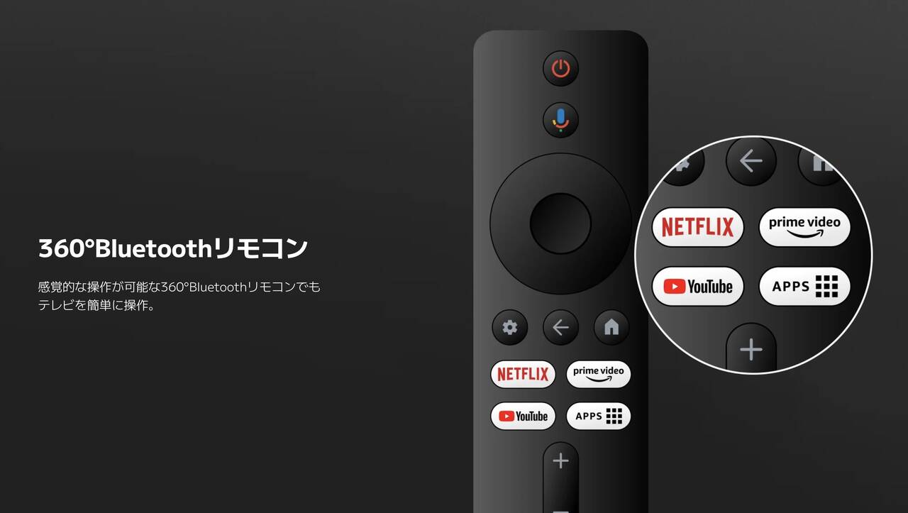▼リモコンにはNetflix、Amazonプライムビデオ、YouTubeの専用ボタンもある。私はNetflixユーザーなので嬉しい…!↓