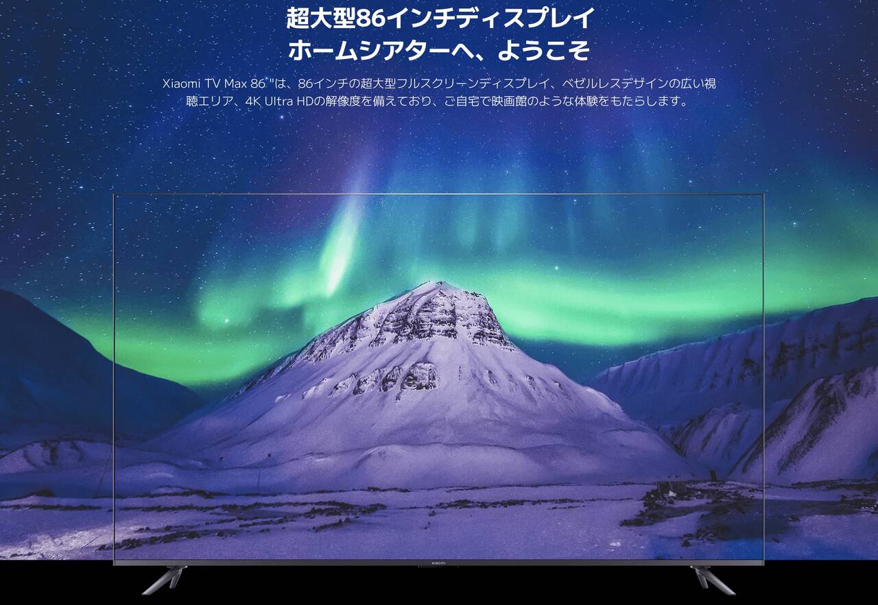 Xiaomi JapanはXiaomi TV Max 86を国内投入すると発表。TVって書いてるけどスマートTVってジャンルの製品なのでチューナーは無し。でもこれ爆安。今回の発表で一番ビックリしたかも。