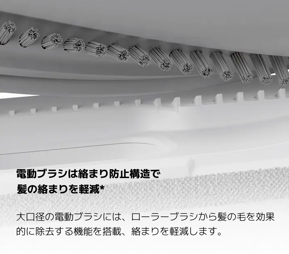 ▼ちなみに上位モデルのXiaomi コードレス掃除機 G20は絡まり防止構造になっているそうで、ブラシの掃除が億劫なら上位モデルが良さそう!↓