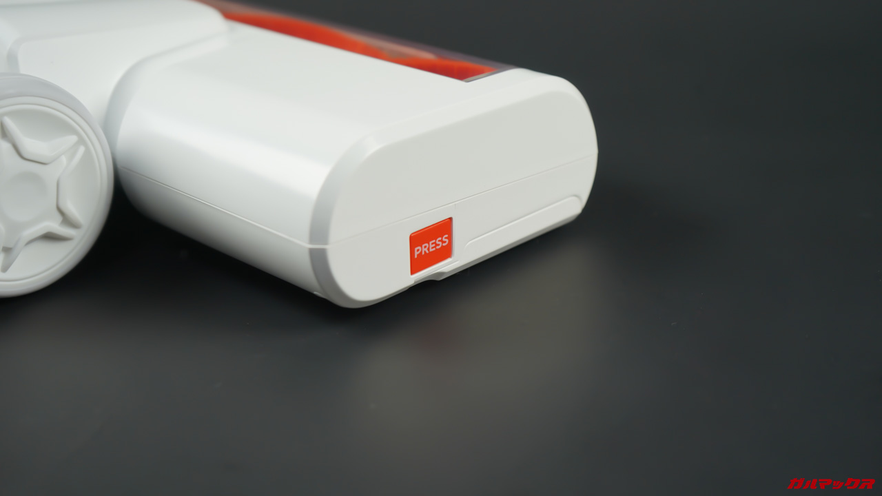 ダストカップを開けるスイッチを押しても自重で蓋が開きませんねこれ。まだ使い始めだからなのか、それとも設計的に蓋がしっかり閉まるように出来ているのか分かりませんが、両手で作業する必要がありました。