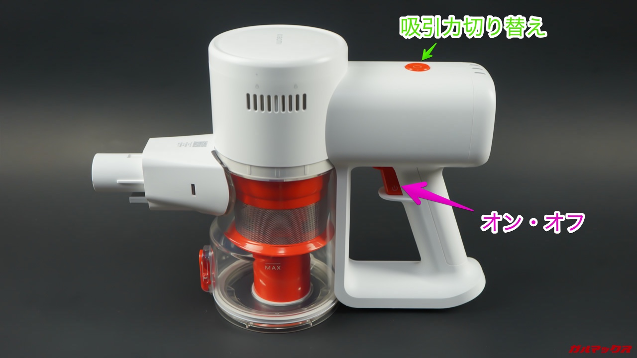 グリップを握っている状態だと吸引力切り替えボタンに指が届かない…。なので、片手で全て操作できれば良かったなと思ったところ。