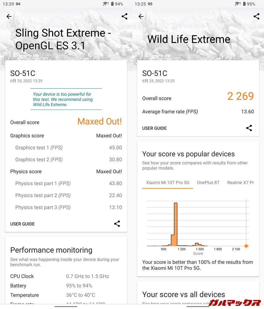 また発熱中はリフレッシュレートが60Hzで固定されてしまうため、120Hzで常用している筆者からすればかなり違和感を感じてしまいます。パフォーマンスの低下を体感させられる…
