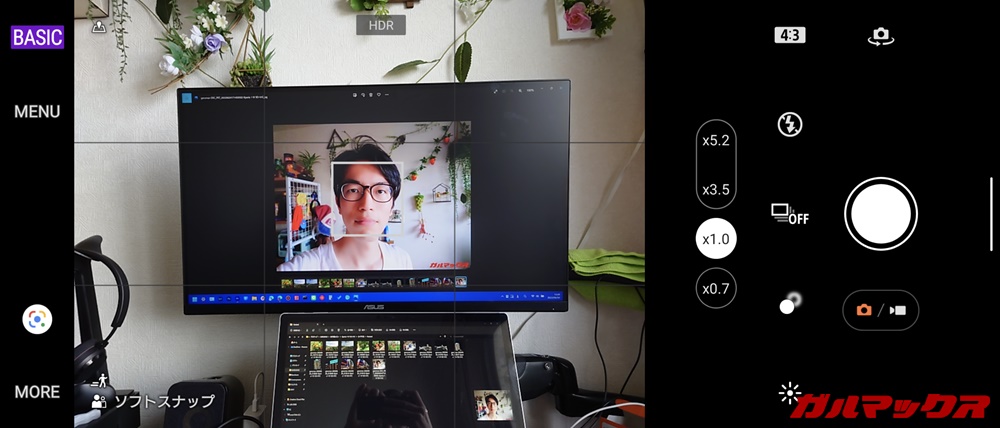 ▼あと顔認識も精度がすごく優秀!独身ゆえ撮影する相手がいないんで自分の写真で試してみたんですが、カメラを変えたりアングルを変えても相手に食らいつくように顔認識のマーカーが飛んでいきます。こりゃすげぇ!↓