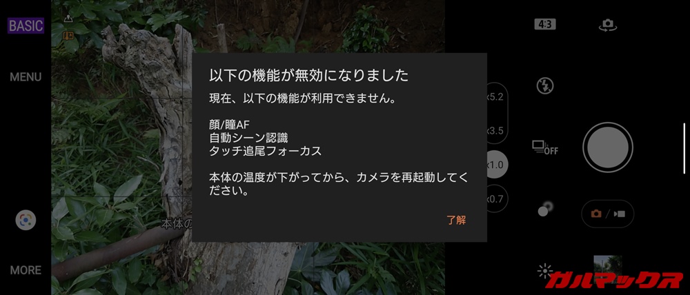 ▼発熱してしまうことがあるハイエンドとはいえ、今回のXperia 1 IVはその中でも顕著です。しかも暑い状況ではカメラで野外撮影しているだけでもアツアツになって不快感がすごいし、カメラの一部機能も制限されてしまいます。↓