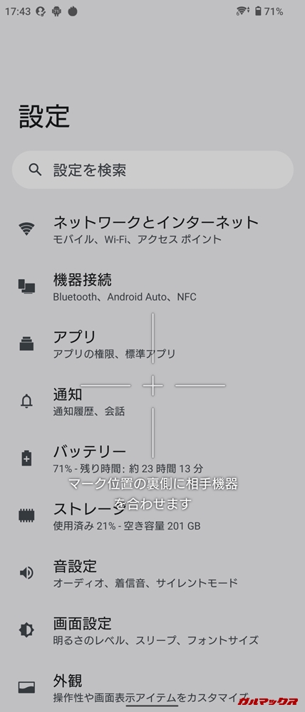 ▼あとワイヤレス充電対応ってのも有り難いですね!ちなみにワイヤレス充電開始時は画面にワイヤレス充電台を合わせやすいようにマークが出てきます。親切。↓
