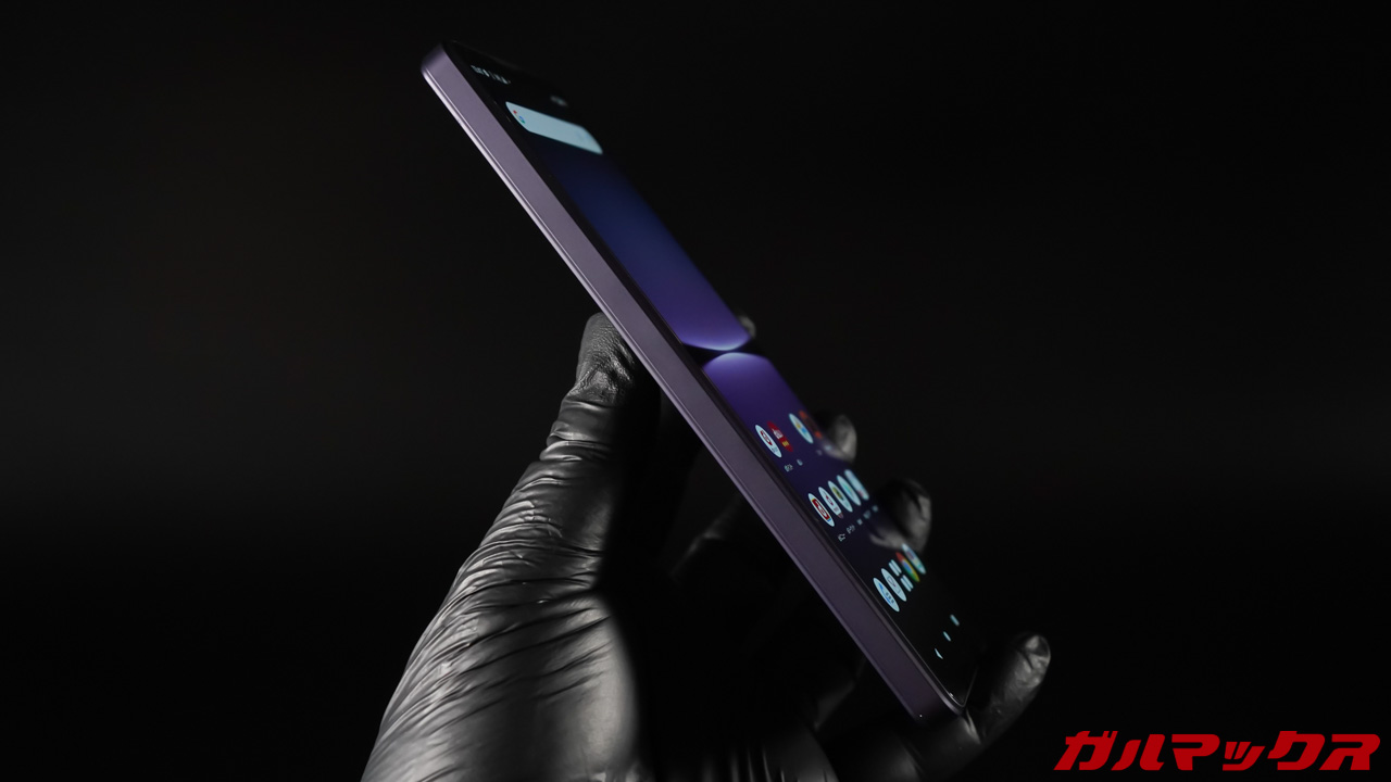 筆者的には上下に若干ベゼルがあってもノッチやパンチホールがなく四隅のカーブが小さいのはとても好み。シンプルで欠けがなく動画、映画視聴は没入感バッチリでした!