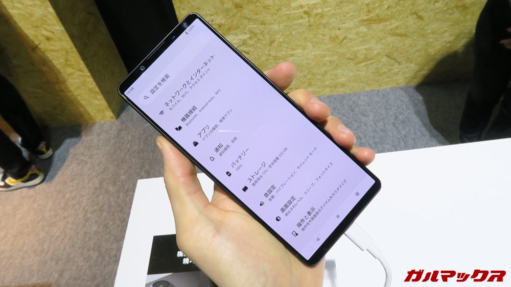 やっぱりスリムでしかも軽いから、持ち心地はいいですね。Xperia 1 Vもなんだけど、軽さとか小さい手の人にとっても優しい。