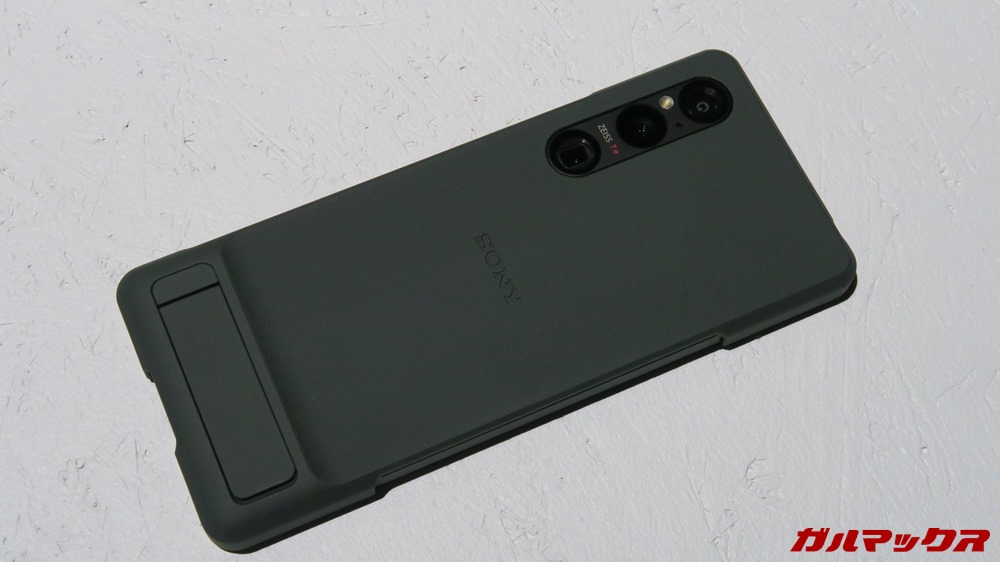 ▼ケースも本体と同じくブラックとホワイトとグリーンの3色が用意されていました。あとキックスタンド付きで、タテヨコどちらも自立ができるようになっています。↓