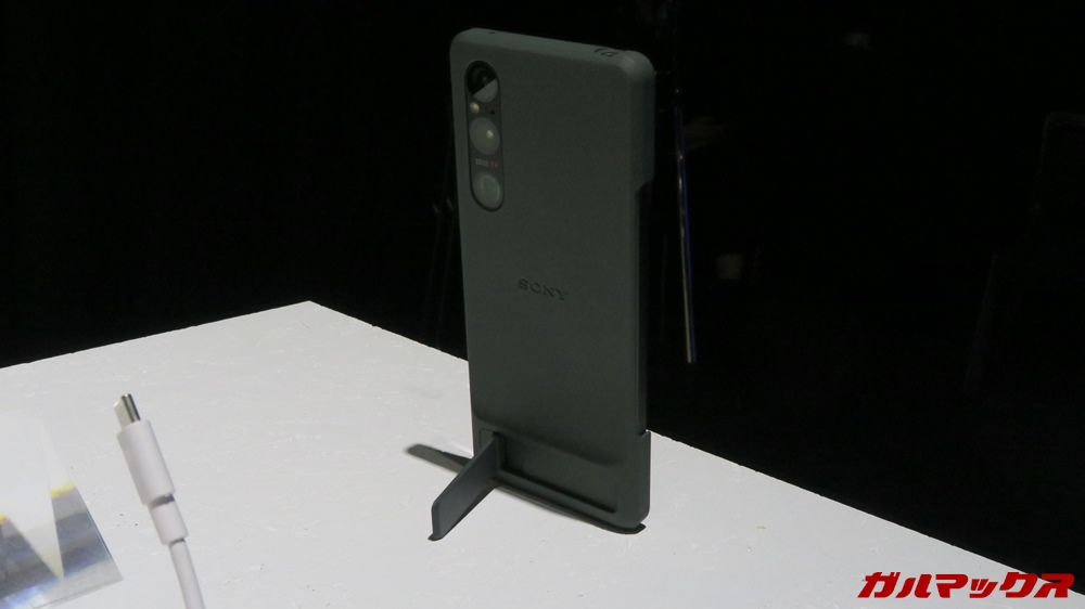 ▼ちなみにケースも展示されてて本体に装着して試せました。ケースをつけるとカメラの厚みが解消されます。これは救い。今ってケースでも出っ張りを解消できないスマホもありますしね。↓