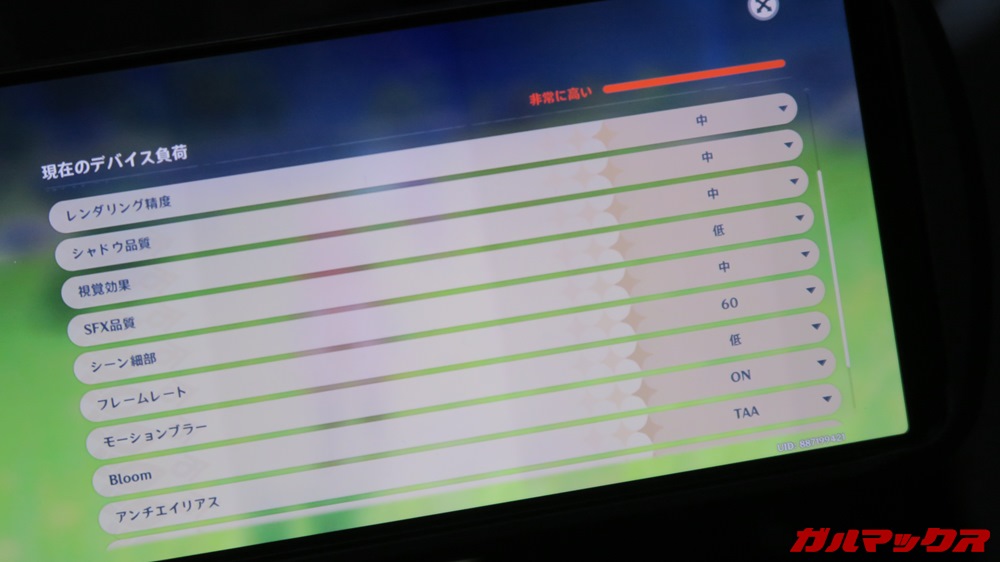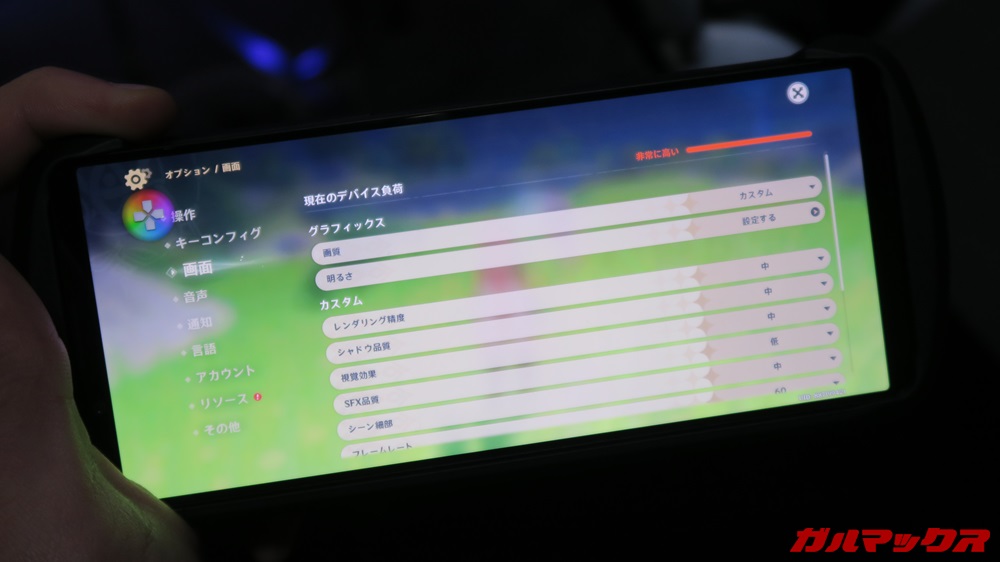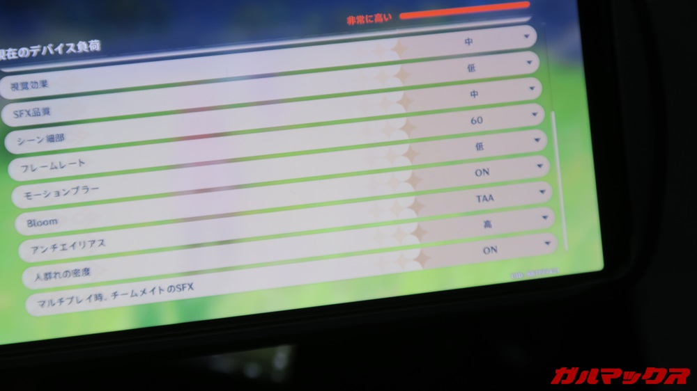 ▼画質設定を見たところカスタムプリセットでした。FPSは60。他は中~低ほどに落ち着いています。↓