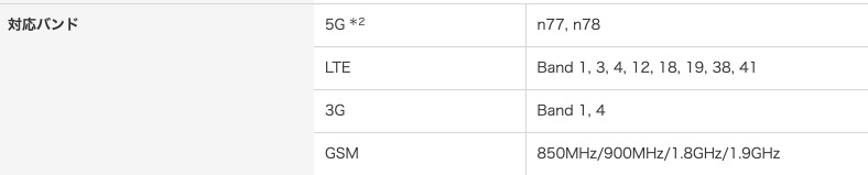 電波はドコモ系、au系、楽天回線の主要周波数に合致してます。が、ソフトバンク系回線で重要なバンド8にはなぜか非対応。。なので、ソフトバンクで使う場合は圏外率が上がるのでマジ注意です。