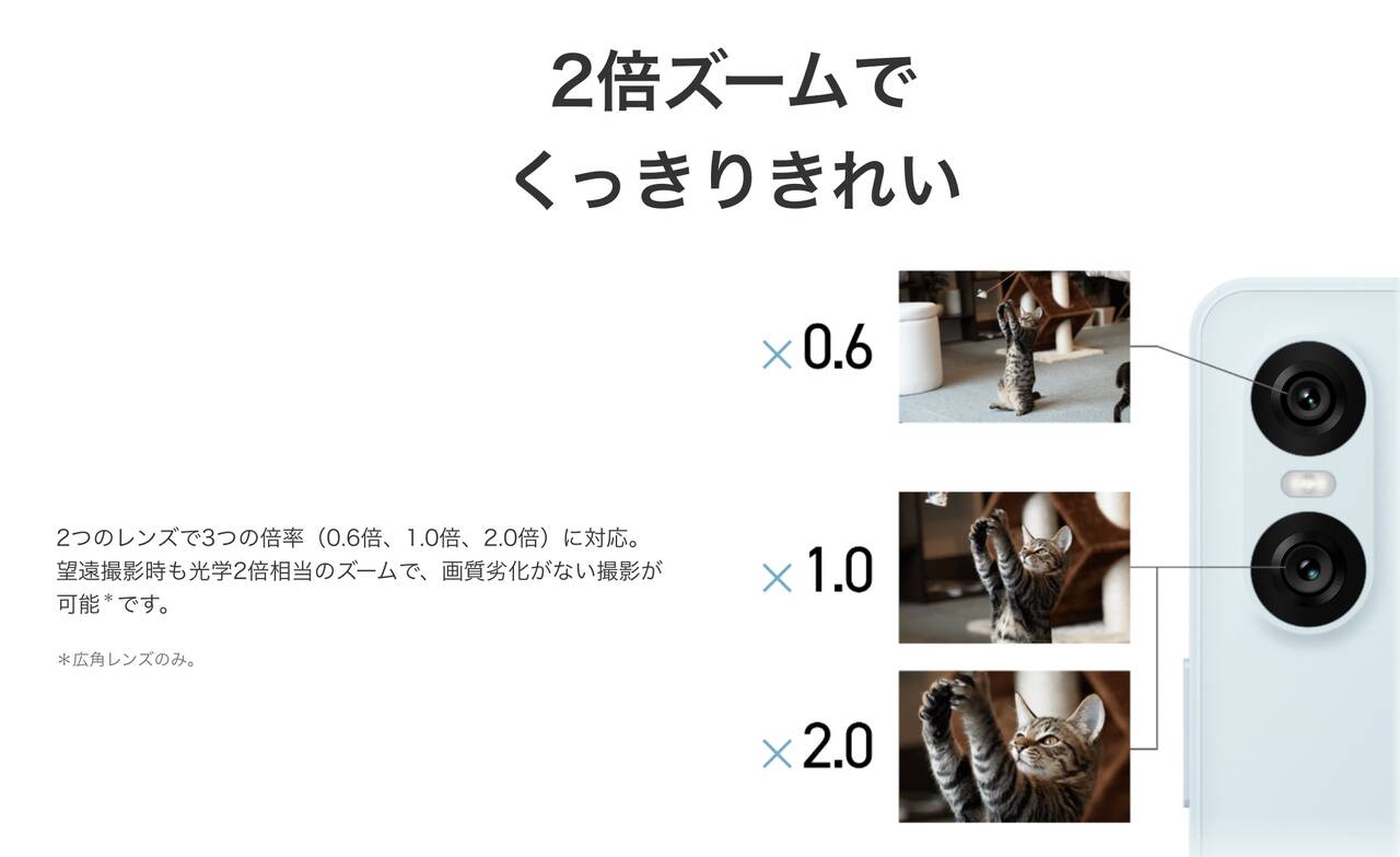 Xperia 10 VIもリーク段階で2カメラになるって噂されていたんだけど噂通り超広角と広角の2カメラ構成に。俺はXperia 5 Vみたいに2倍は画質劣化なく撮れるようになるんじゃね?って言ってたんだけどその通りで出てきた。
