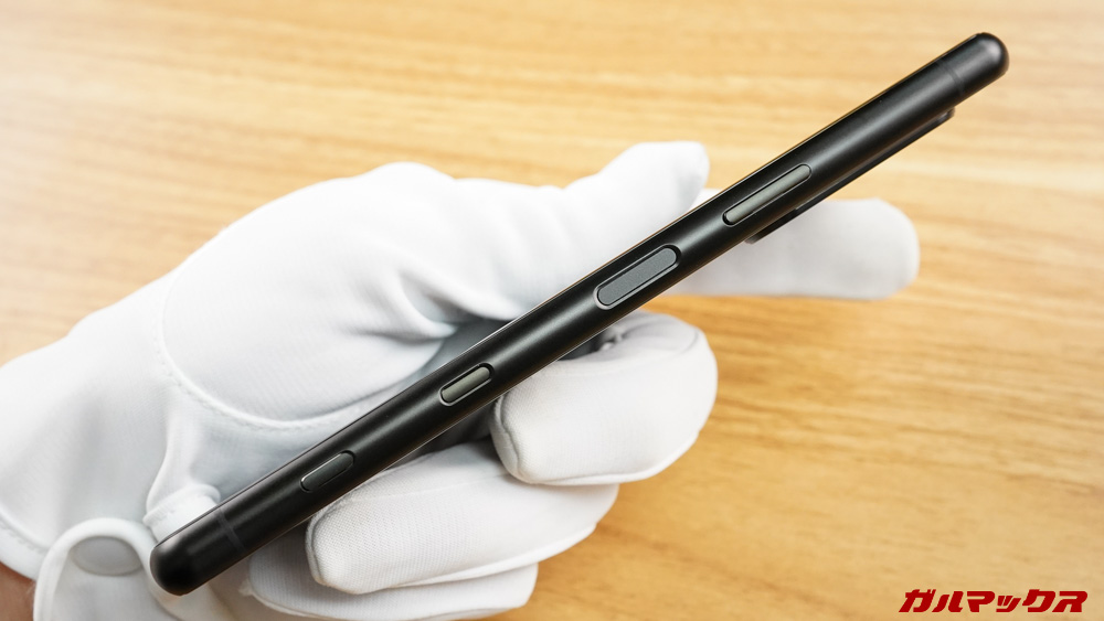 ▼上の引っ込み気味なキーはGoogleアシスタント用となっており、押すとすぐに音声入力ができるようになる仕組み。下はカメラ撮影時のシャッターキーとなっています!特に後者のカメラ、メチャクチャ便利で大好きです。↓