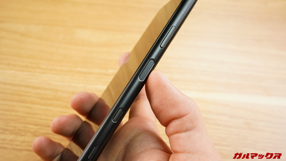 指紋認証に関しては精度、速度ともに良好で、触れて0.5秒も立たずにすぐに画面がついてくれるぐらいに早い!ただ、側面配置なので持ち方、特に左手でスマホを使うことの多い場合は認証に手間はかかりますね。