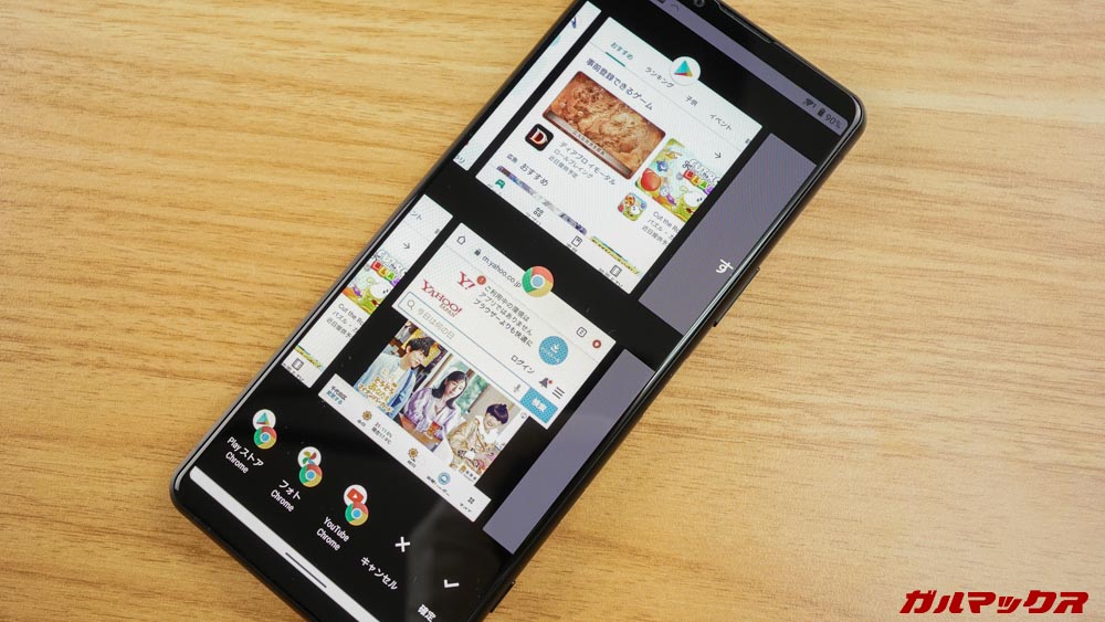 ▼画面横のバーをダブルタップするとサイドセンスメニューが出てきます。ここからアプリをすぐ呼び出せるのは勿論、分割画面、ポップアップ表示、そして「指定したアプリの同時起動+分割表示」ができるのが超便利!↓