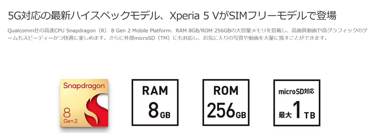 Xperia 5 V SIMフリー版の特徴は以下の通り!