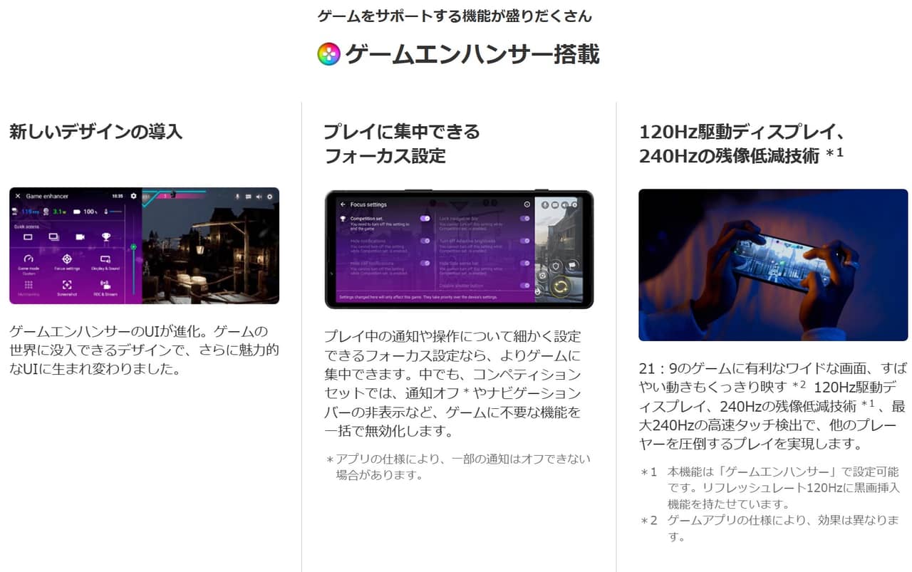 ▼あとゲームプレイをサポートするゲームエンハンサー機能もバッチリ対応。ゲーム中の通知ブロックやバッテリーを介さず直接充電する機能、YouTubeライブ配信といった機能も使えますよ!↓