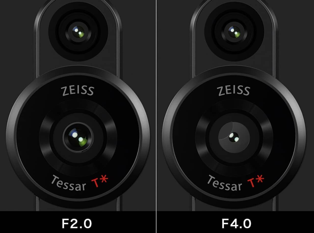 ▼Xperia PRO-Iは可変絞りに対応しており、撮影シーンに応じてボケ濃度や光量を調整できるとのこと!F値を変えられるスマホはかなりレア。↓