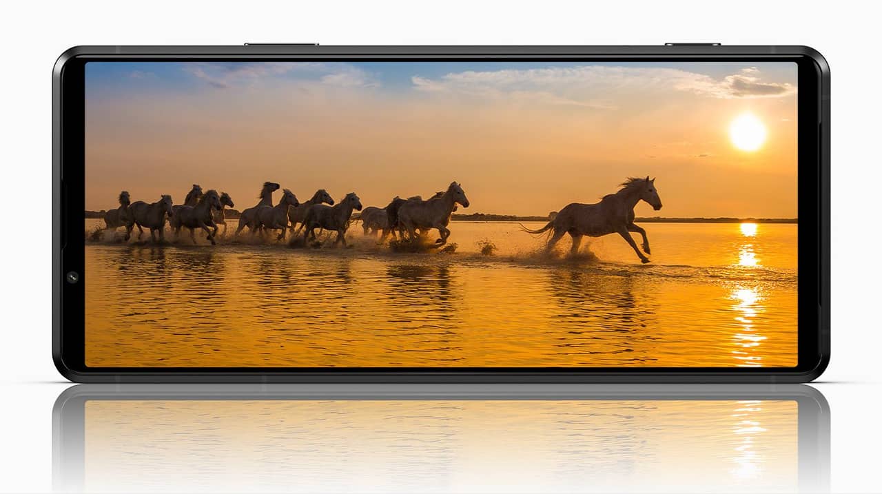 ▼ディスプレイは高級テレビ級スペックと言っても差し支えないでしょう!解像度は4K(3,840×1,644)と激高!さらに有機EL材質で、比率は21:9のXperia恒例の縦長となっております!リフレッシュレートも120Hz対応で超なめらかに動きます。↓