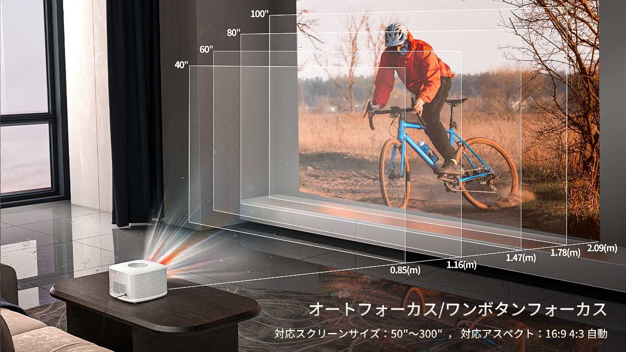▼2.09mで100インチの投影もOK。もちろんHDR 10も対応していますよ!