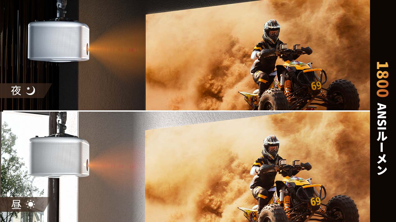 なので最近は決められた計測方法で明るさを表す「ANSIルーメン」という投影面の明るさを計測したものが一般的になりつつありますが、Yaber Aurora Sは1800ANSIルーメンで非常に明るいことが特徴。
