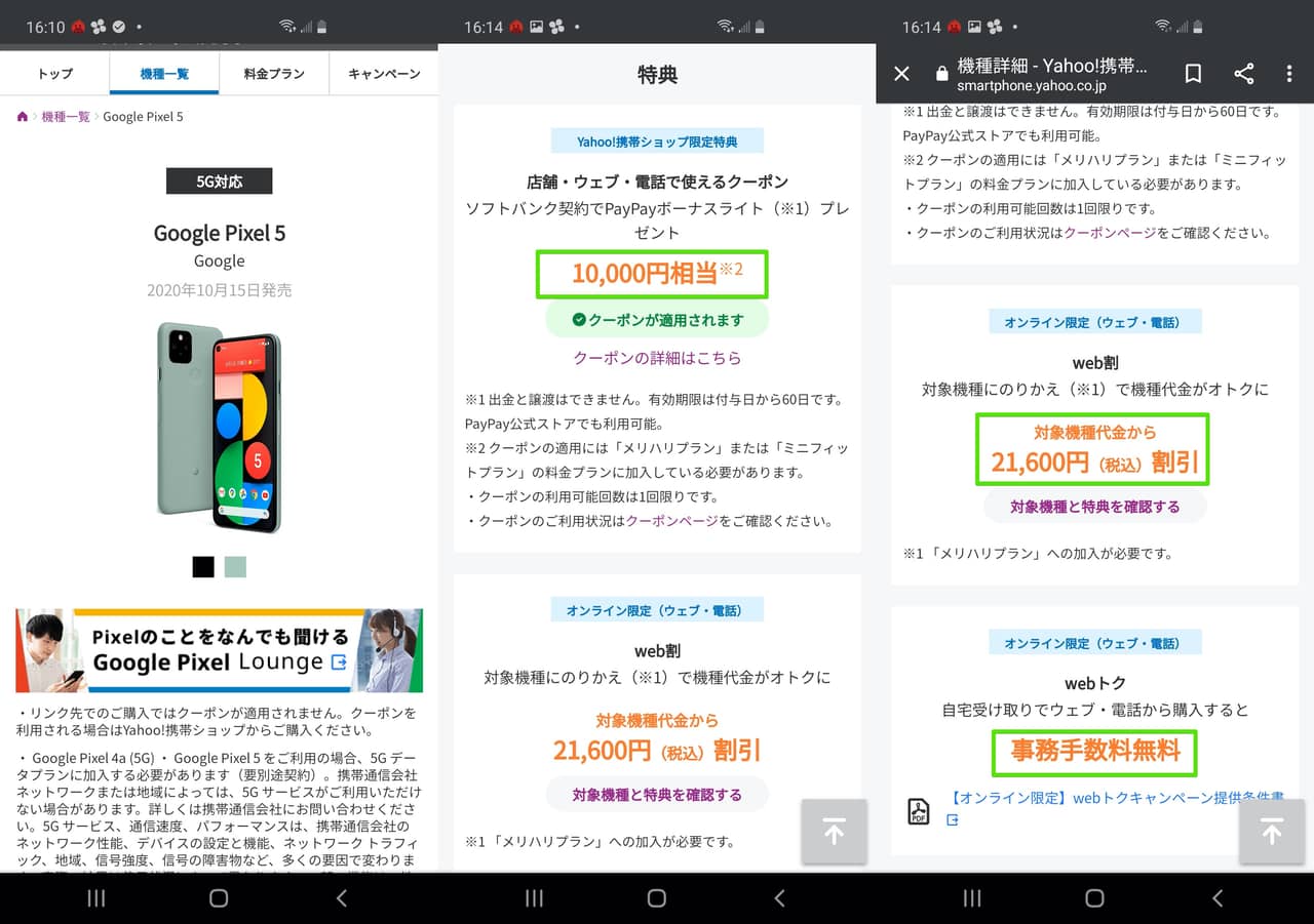 Yahoo!携帯ショップ経由だとPayPayボーナスライトが10,000円相当貰える