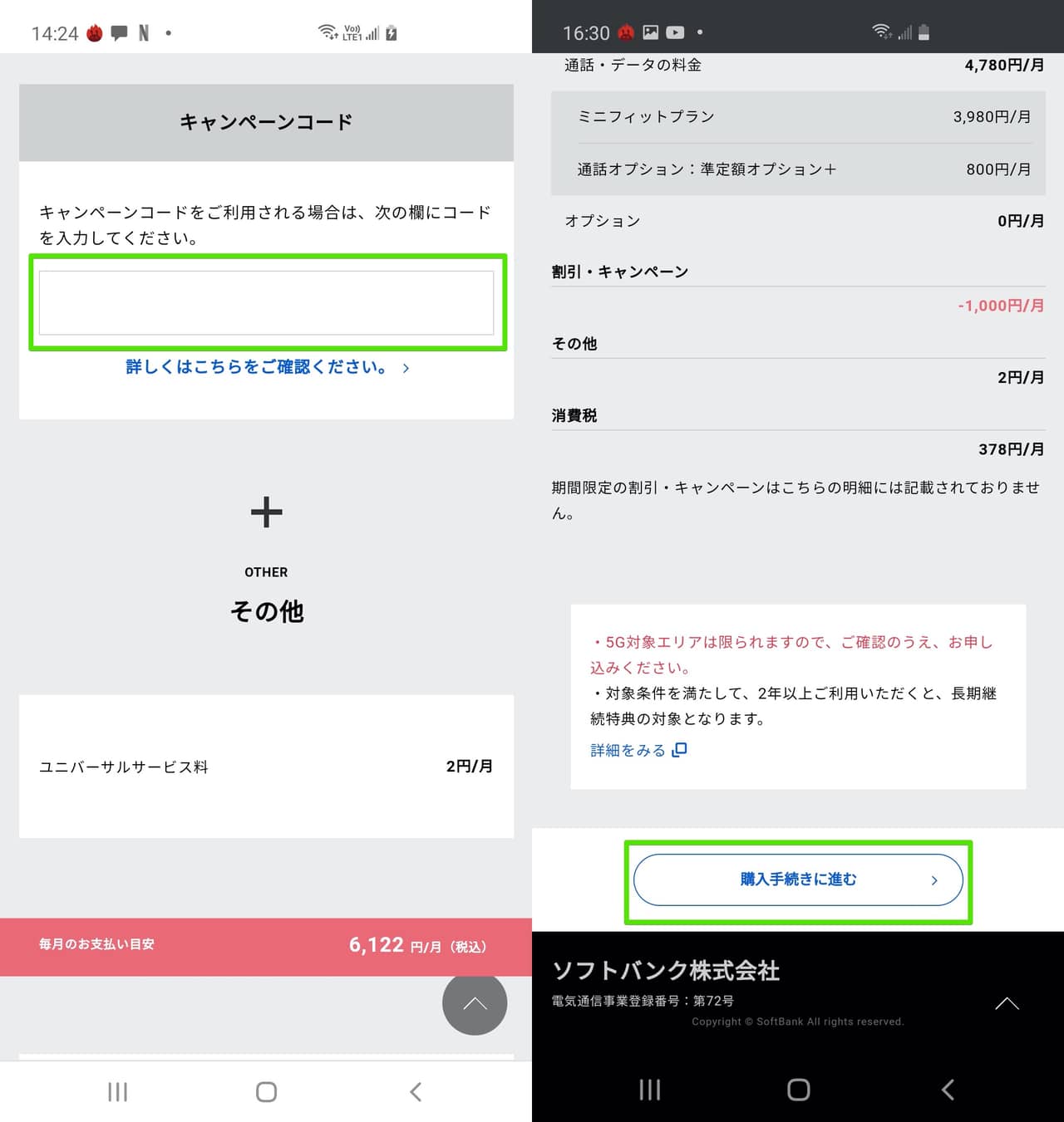 クーポン取得〜ソフトバンク申込み手順