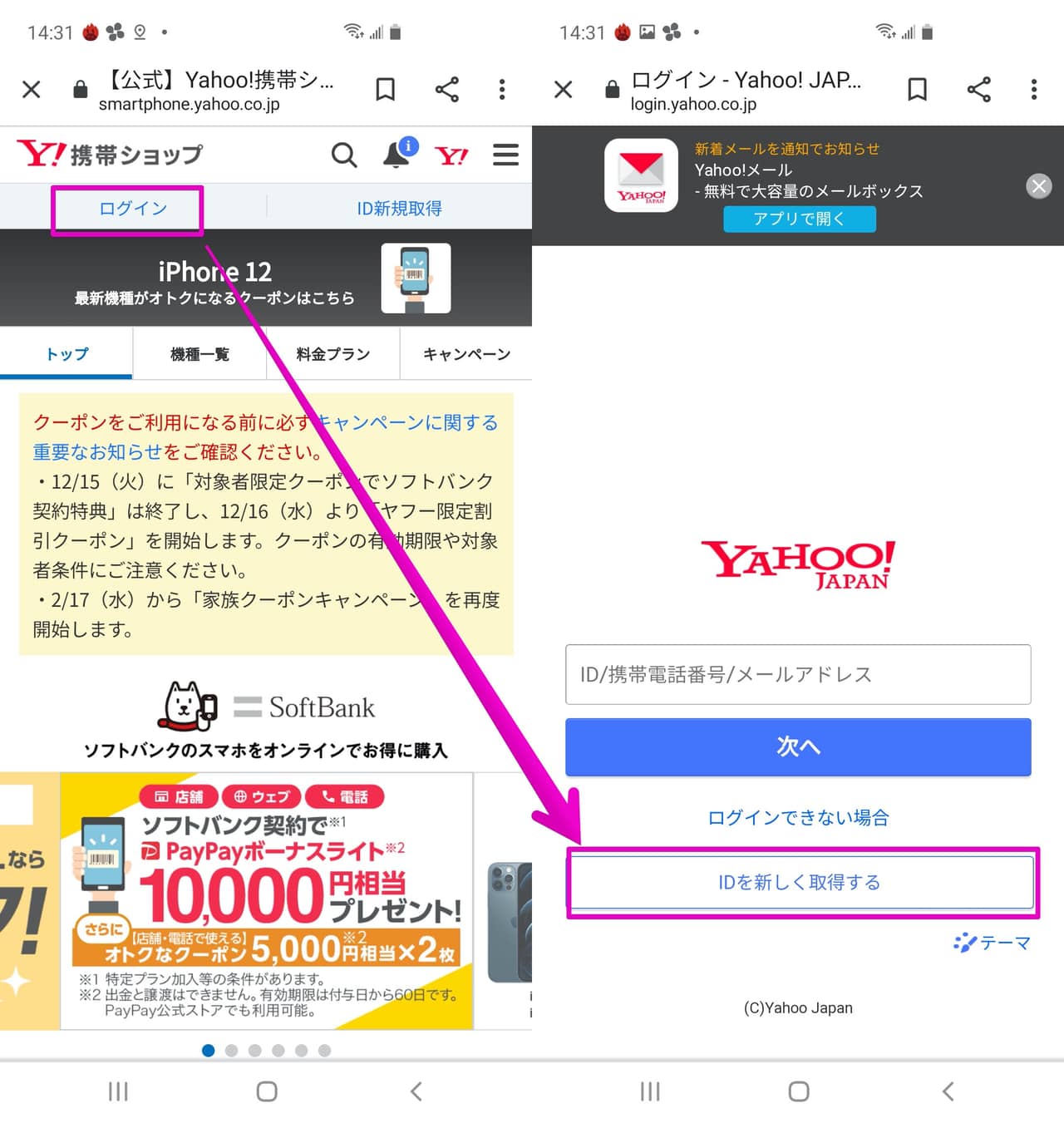 - Yahoo!携帯ショップでログインしてクーポンを取得