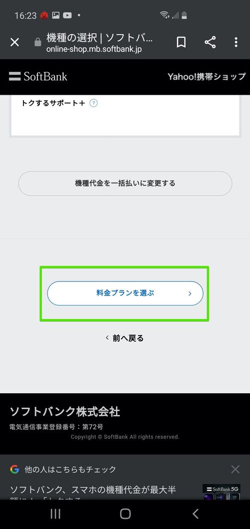 ▼支払い方法を選んだら「料金プランを選ぶ」をタップ↓