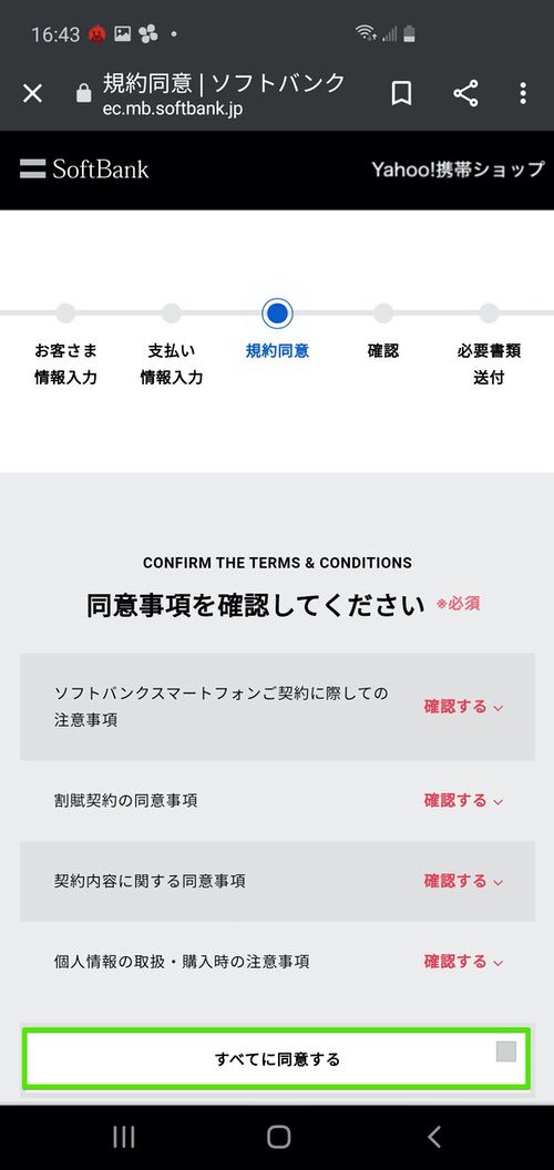 ▼規約を確認したら「すべてに同意する」をタップ↓